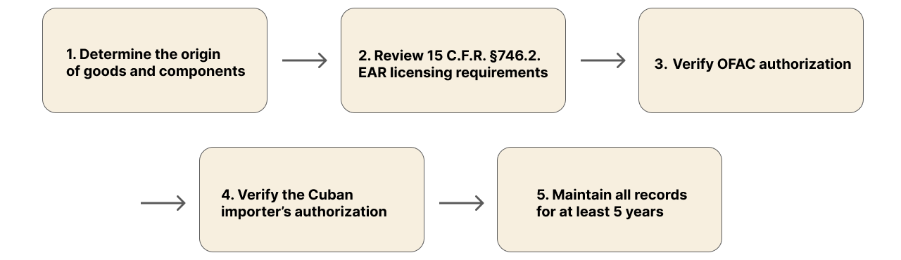 Compliance with U.S. regulations on Cuba must be exact—there’s no room for shortcuts. Below is the typical process, with real-world examples to illustrate each step: